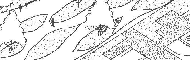 River’s Edge City focuses on the convienience of close proximity residential and commercial buildings. While roads are still available for cars and buses, the city advocates for the use of boats and walkways to decrease the carbon footprint and promote a cleaner city by clustering the urban buildings in a continuous linear line along both sides of the river. AXONOMETRIC