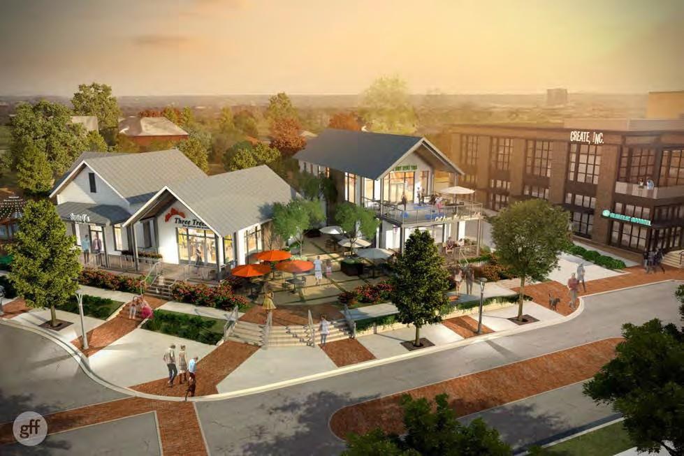 GFF was hired by Open Realty Advisors and CIM Group in 2012 to help master plan and design significant improvements to the portfolio of nearly fifty properties on Henderson Avenue. The first and most significant of the planned projects is a mixed-use development on Henderson between Glencoe and McMillan on an over 1,000’ long, 3.55 acre primarily vacant tract of property. As a catalyst project for the corridor, special emphasis has been placed on streetscape design, quality of public space making and walkability, with the goal of adding value to the overall portfolio. This vision for Henderson Avenue required changing the existing zoning that encouraged nodes of bar and restaurants separated by low-rise multifamily uses to a more cohesive plan that will allow up to two levels of creative office above ground level retail and will create an uninterrupted pedestrian-friendly streetscape along the entire length of the site. At either end of the site the scale steps down to small one-story boutique retail buildings that respect the transition to the adjacent residential neighborhoods. The planned project includes a two-level below grade garage with 525 spaces, +/- 63,000 SF of ground level retail and restaurant uses, and +/- 80,000 SF of second and third level office uses.