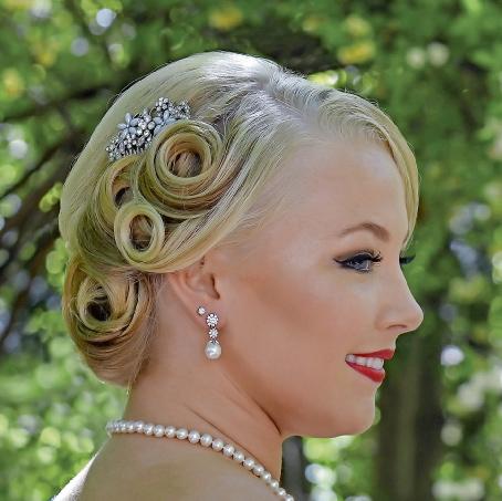 Created by Erin Corscadden at The Hairloom Hair & Beauty, in Blackheath, this Art Deco-inspired up-do was finished with a Swarovski-crystal and pearl hair comb. Hairloom can tailor wedding packages to include hair and makeup, photography by Brigitte Grant, trials, pamper days with facials, massages and pedicures. Erin also offers a mobile service to help ensure your wedding day is stress-free.