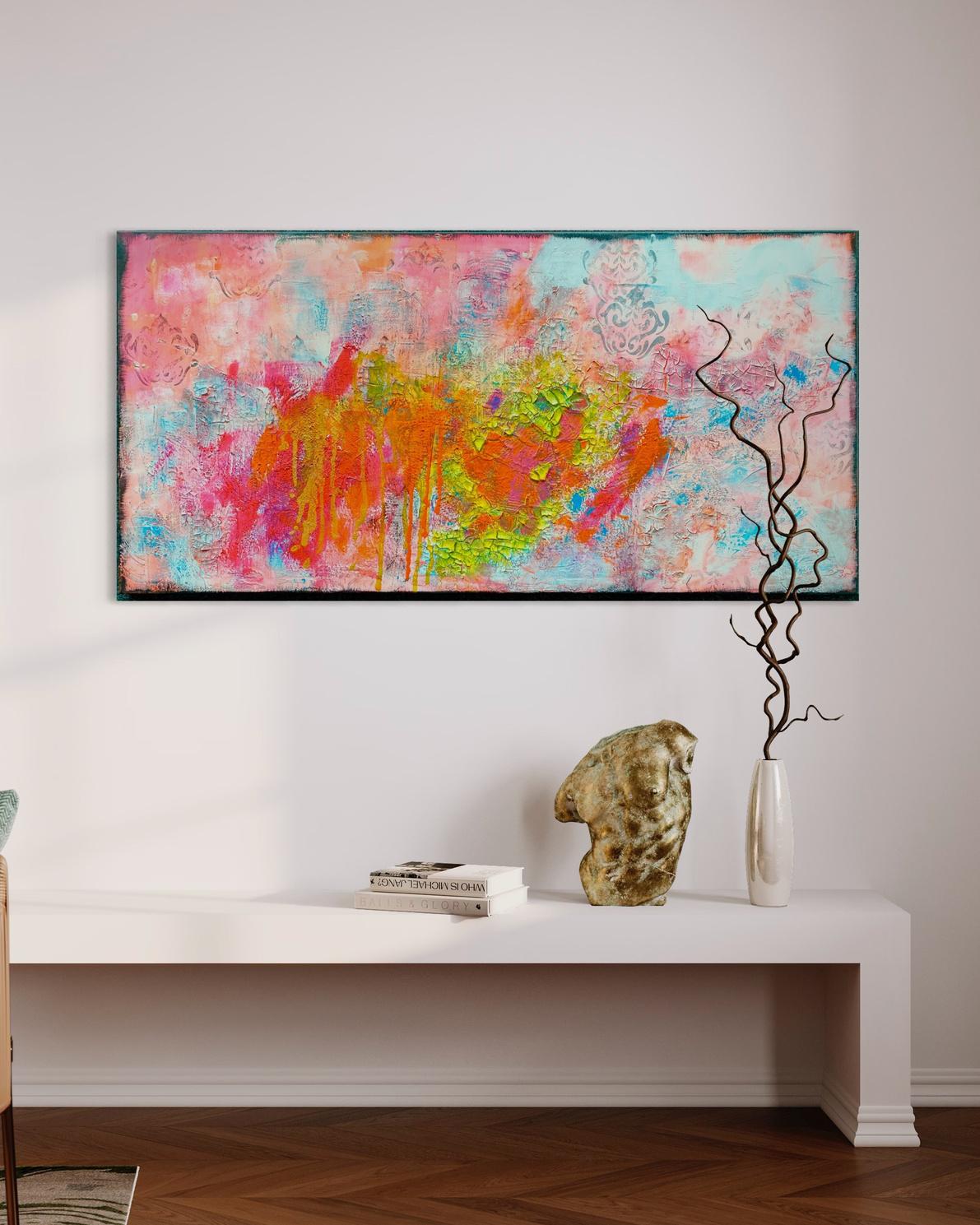 Monika Starke | “Joie de vivre”| Größe: 144x84cm | Acryl auf naturfarbener Leinwand | Preis 1250€ incl