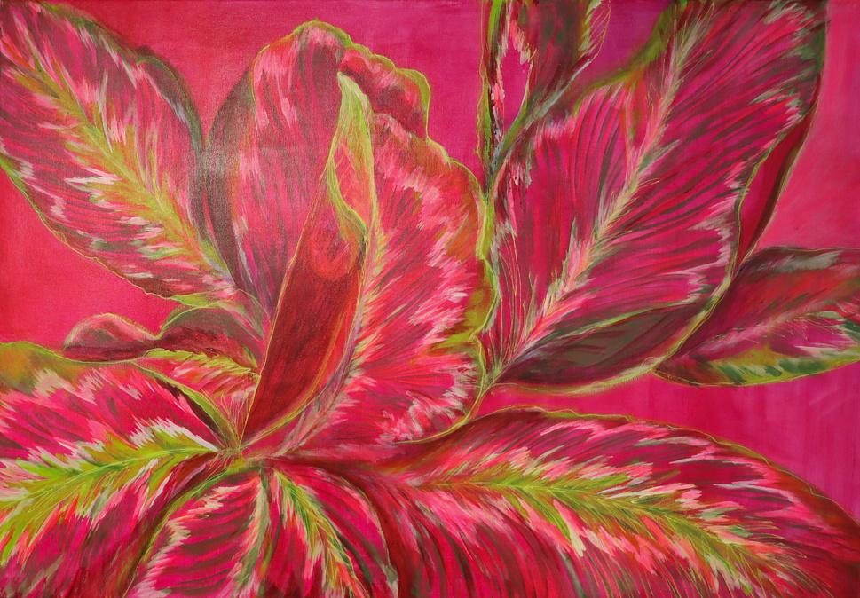 Jutta Reindler | Magische Magenta Blätter | Dimensionen 100 * 70 cm | Acryl auf Leinwand | Preis 720,- €
