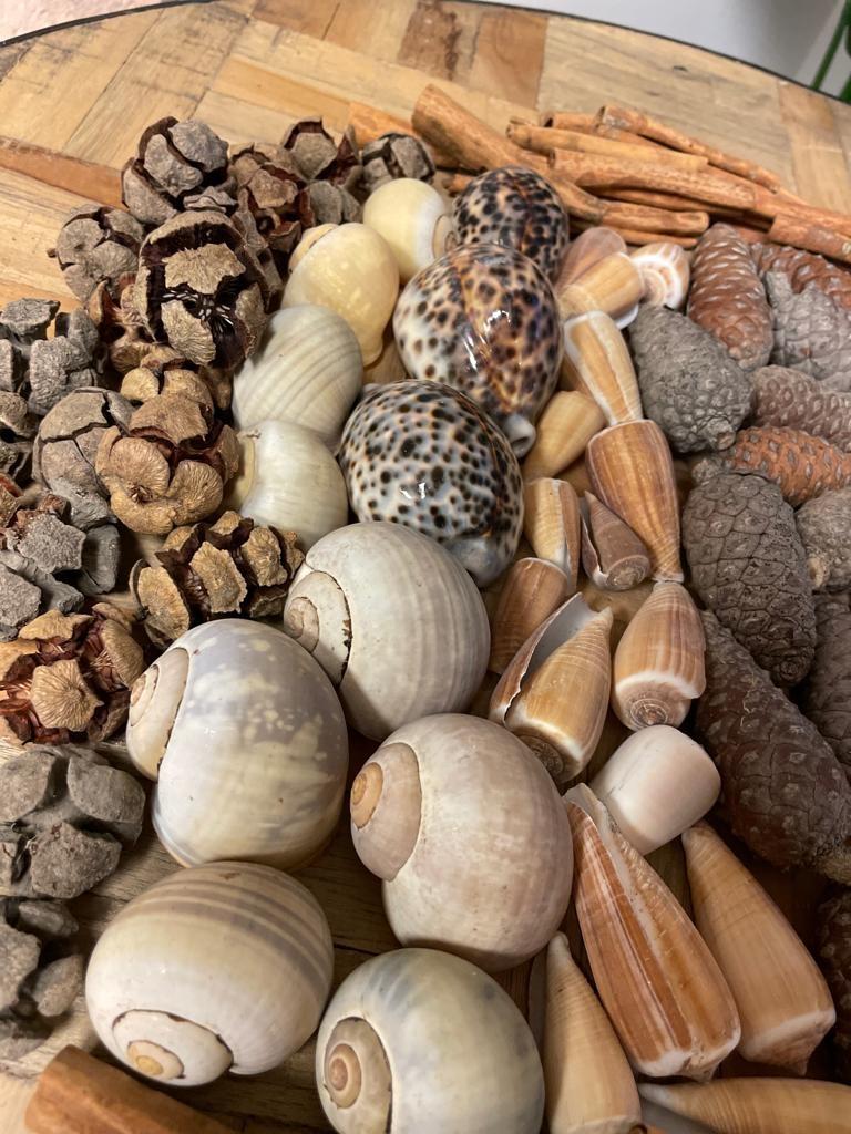 Hierbij kun je denken aan materialen als zand, rijst, schelpen, houten schijfjes, glitter stenen maar ook zeker de houten mandala's van Grapat