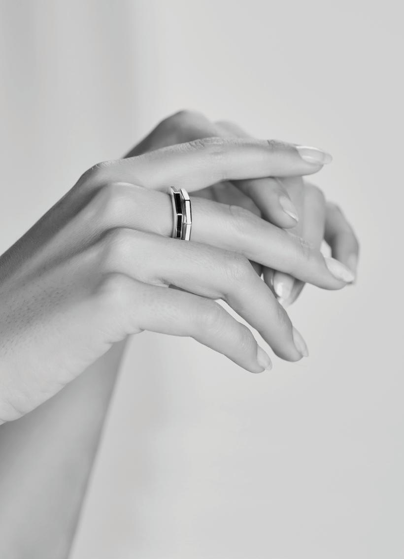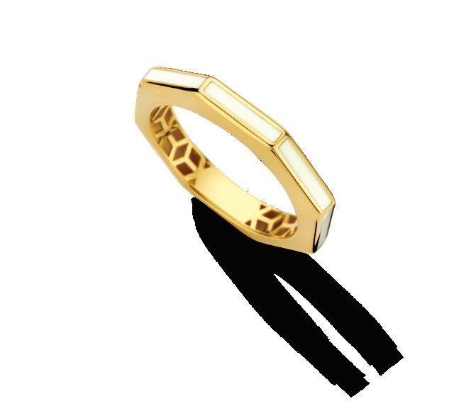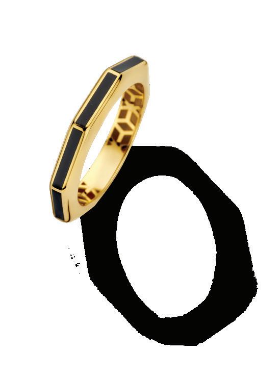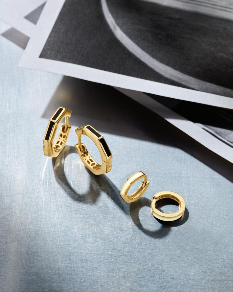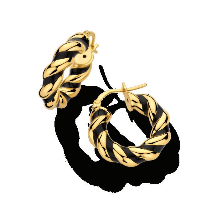 De smalle hoekige designs lenen zich heel goed om te stapelen. Mix de gouden ringen in verschillende kleuren of met plain gouden items. De gedraaide vormen van de oorringen passen zich aan elke stijl aan. Van chunky twisted oorbellen tot verfijnde colliers. Met emaille kun je vele kanten op.