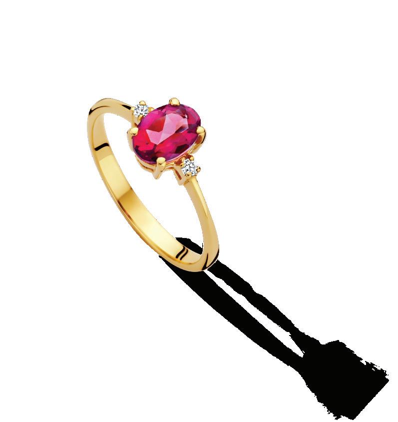 2. T136 Geelgouden ring met roze topaas en 0.04ct. H SI diamant 479,-