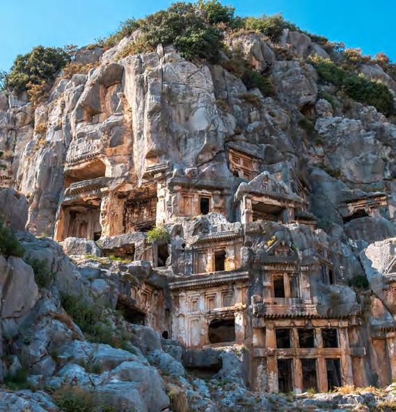 The theater of Myra, with the rock-cut tombs of the ancient Lycian necropolis on the cliff in the background