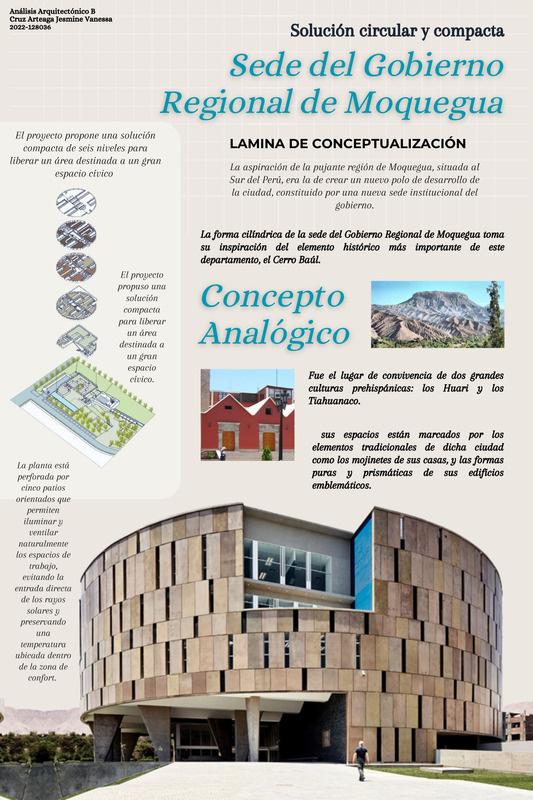El presente trabajo expandió mis conocimientos acerca del gran concepto detrás de una obra arquitectónica como lo es el Gobierno Regional de Moquegua, me permitió comprender el aspecto espacial, formas y volúmenes formales y su relación con el concepto, idea rectora inicial.