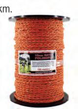 A visible, 9-conductor, low-resistance, UV-stabilized 2.5mm wire. Portable, durable, and ideal for longdistance temporary paddock fencing. Available in 400m rolls. Resistance: 180 Ohms/km.
