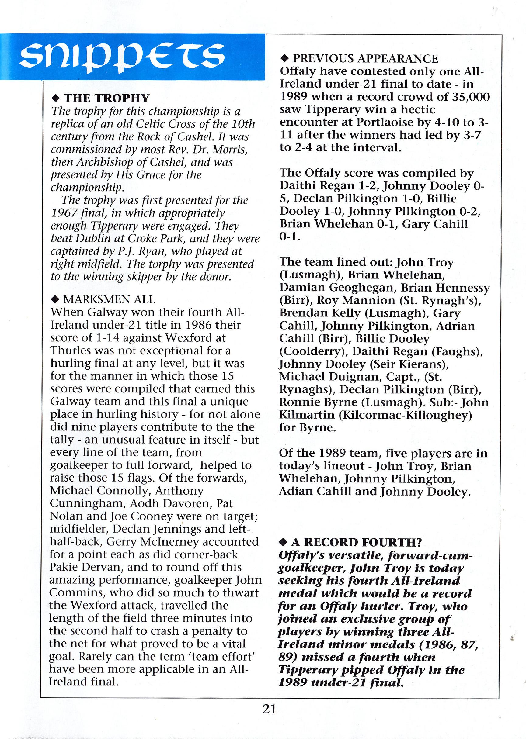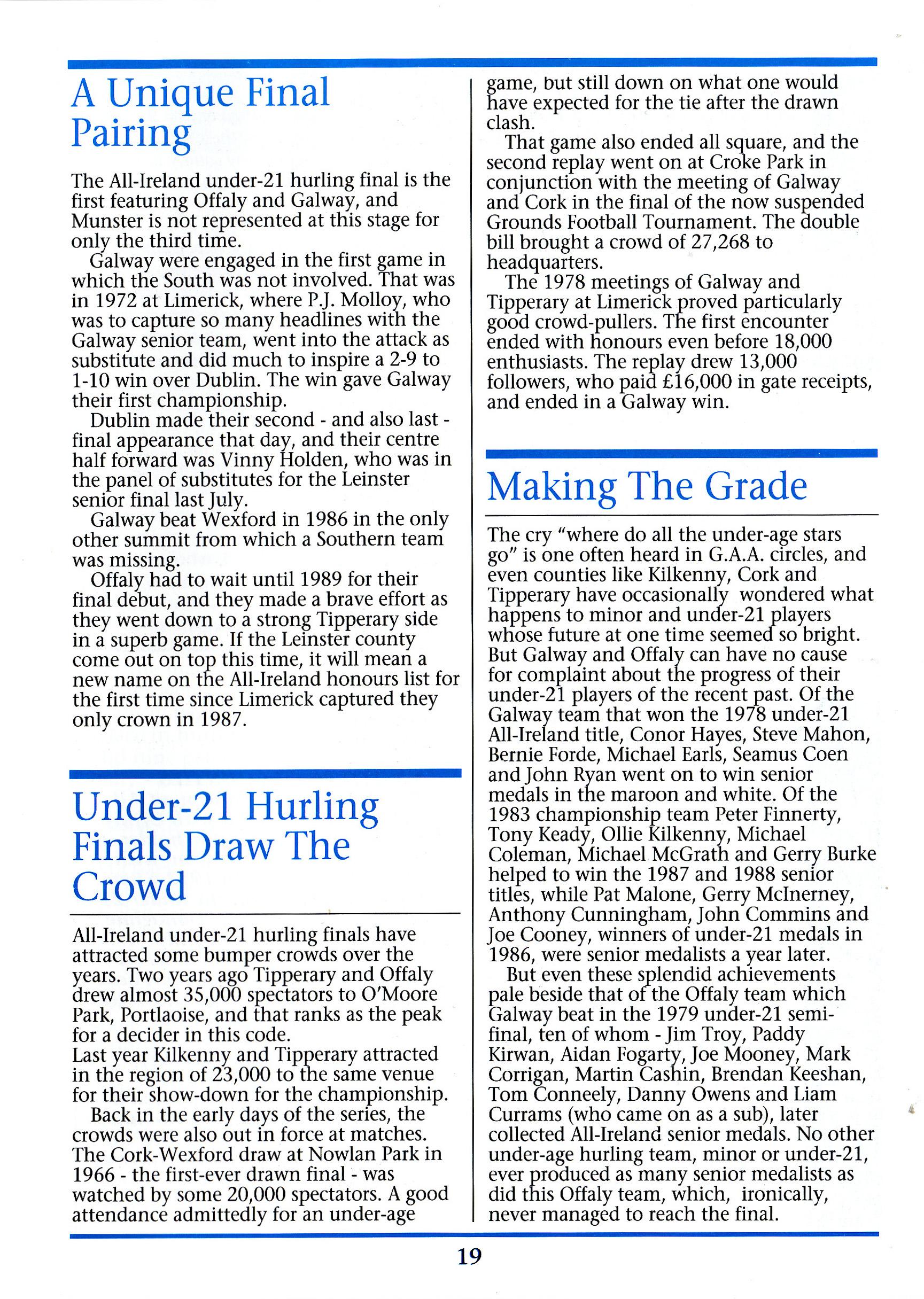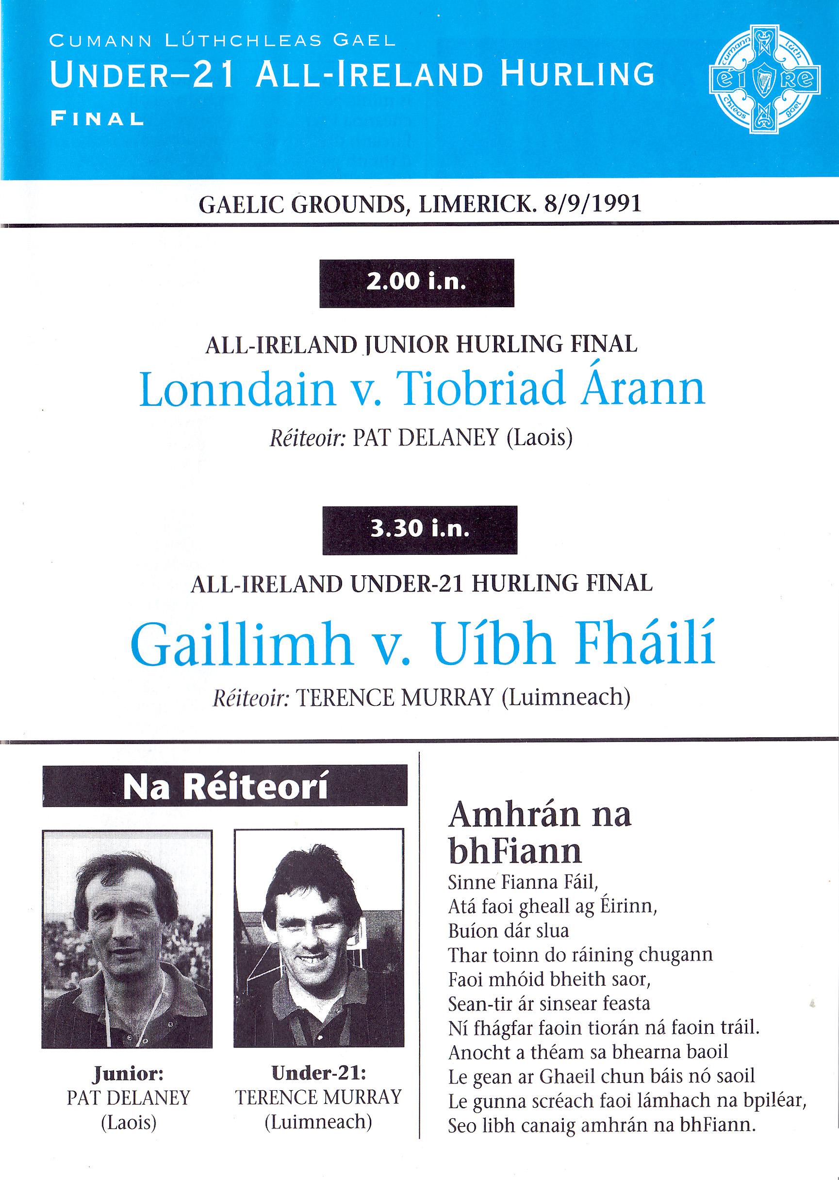 All-Ireland Under 21 Hurling Final 1991 by Jarlath Cloonan - Issuu