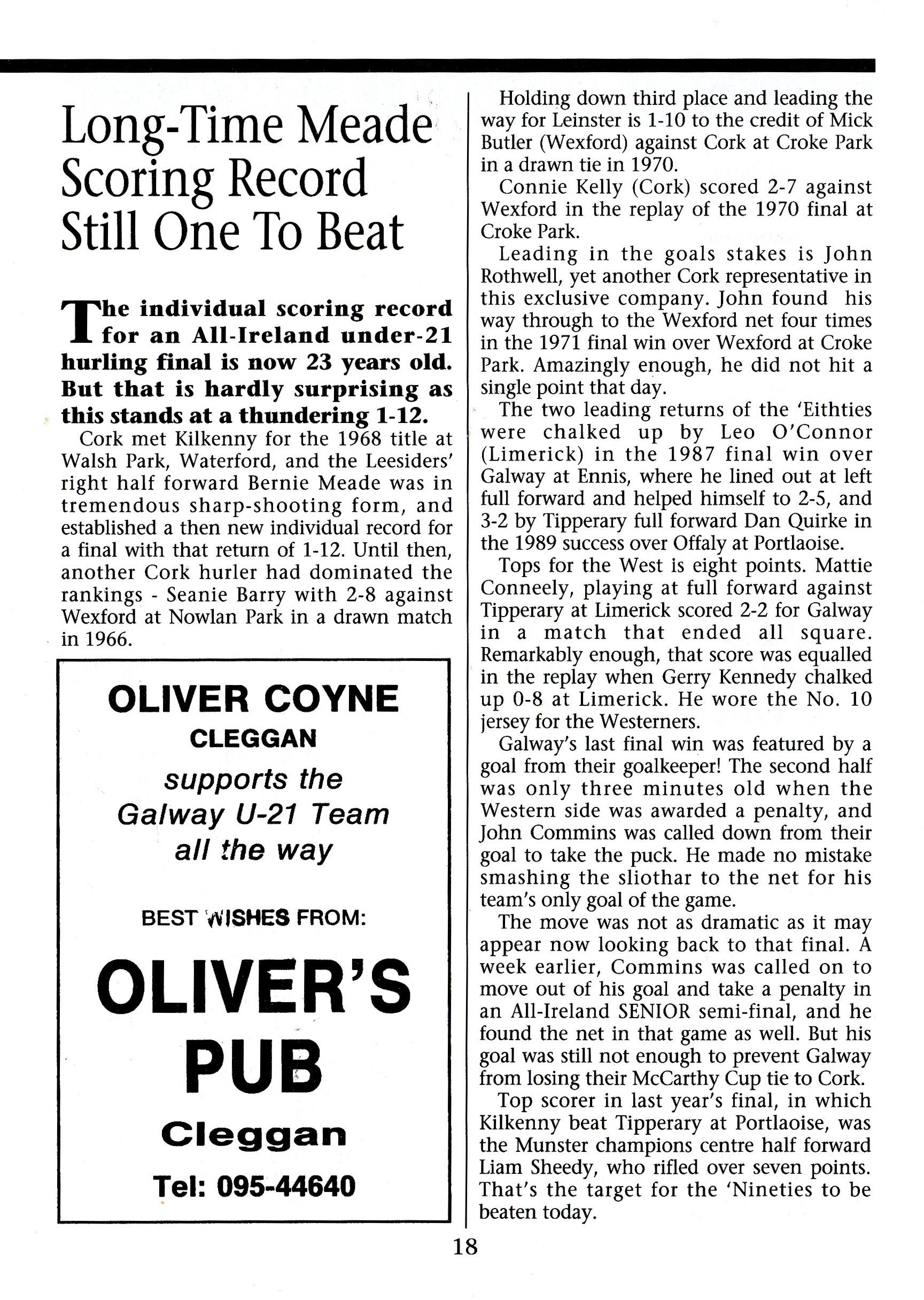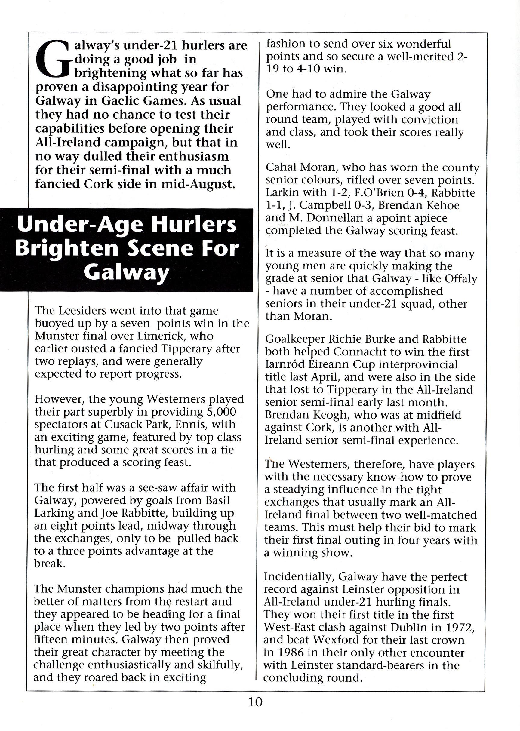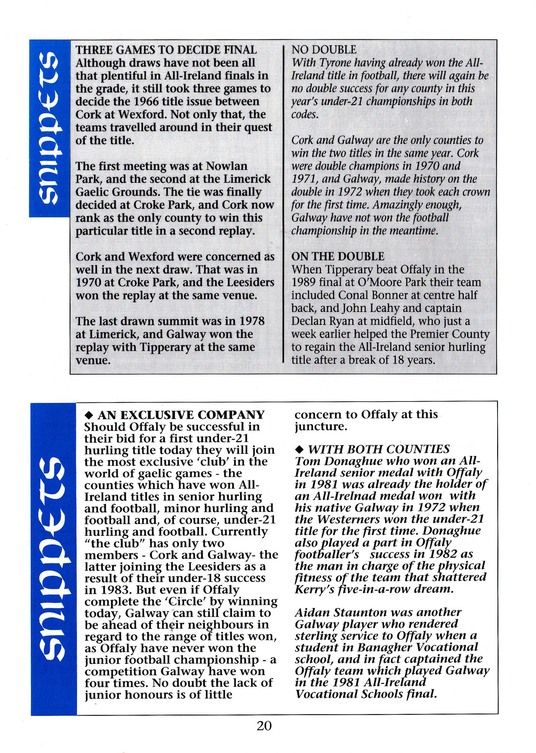 All-Ireland Under 21 Hurling Final 1991 by Jarlath Cloonan - Issuu
