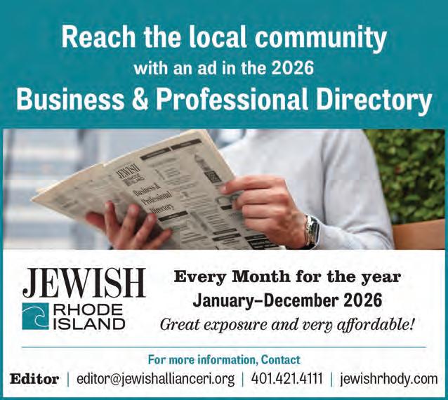 Without these advertisers, we would have no voice. Jewish Rhode Island depends on our advertisers for support and you, our readers, for the valuable news and information that goes into making a newspaper and this guide. Together we are able to cover the breadth and depth of our community.