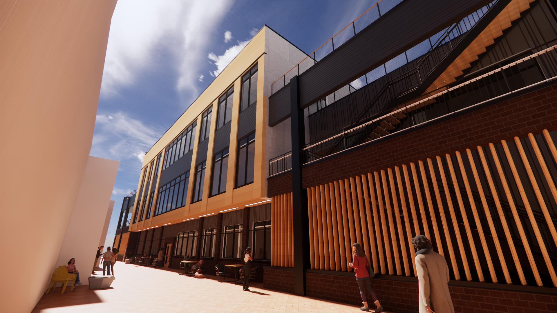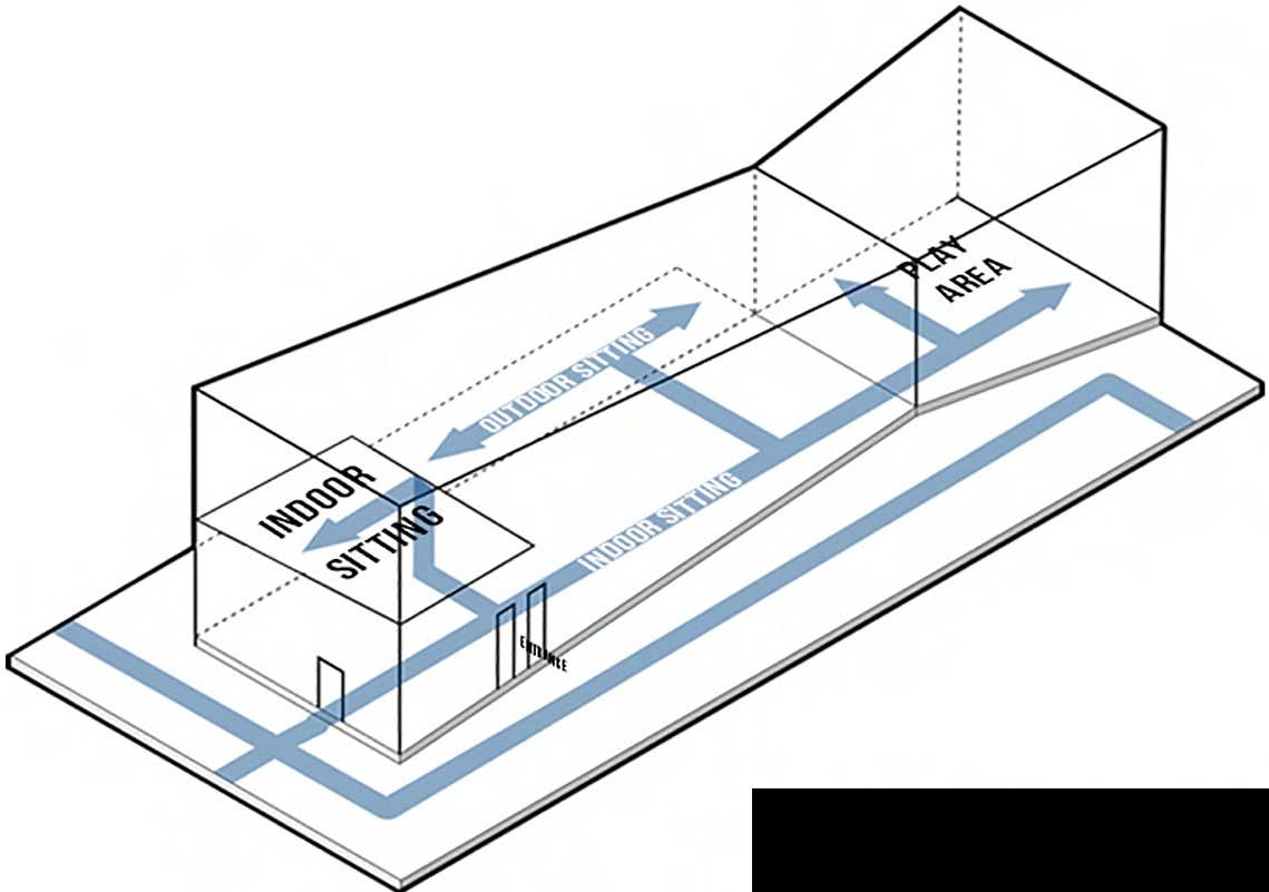 The outdoor sitting area was created to give more options to customers while giving them optimal shading with the large overhanging roof so they will stay cool.