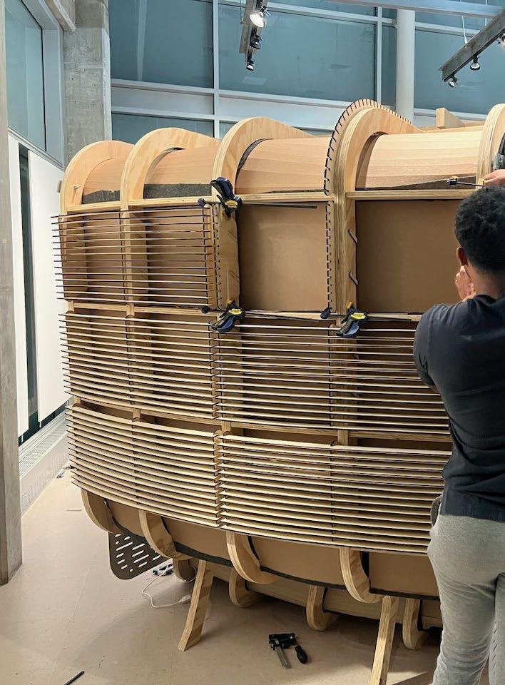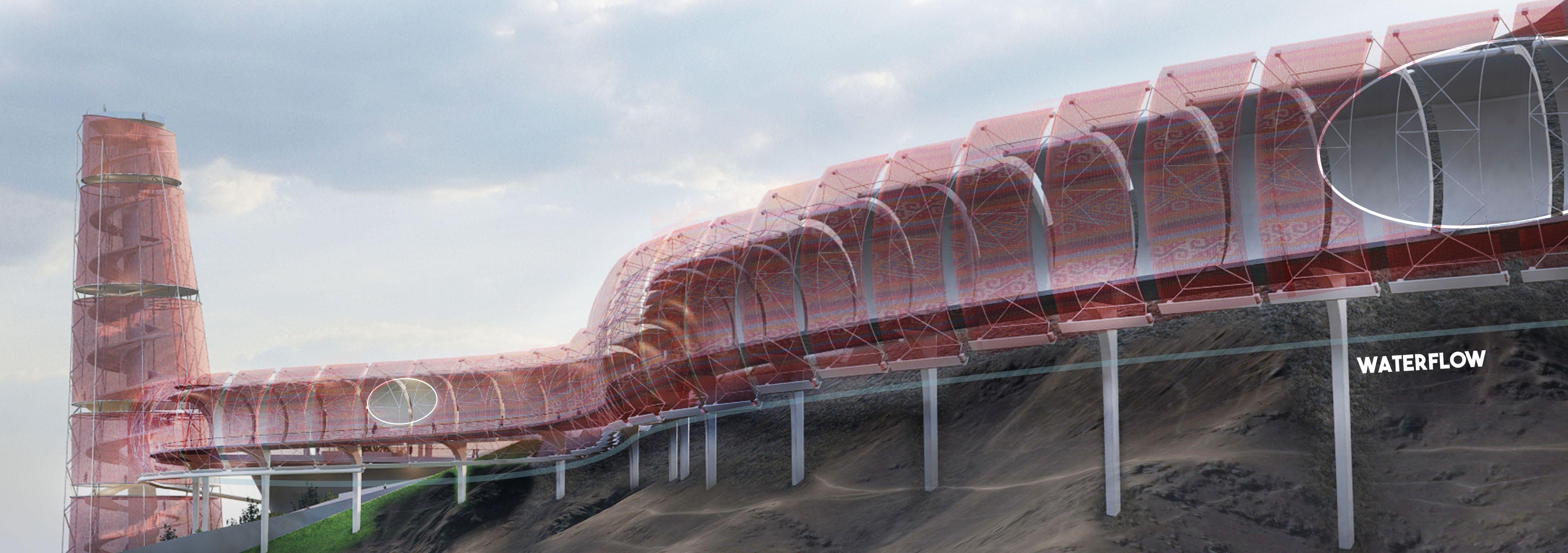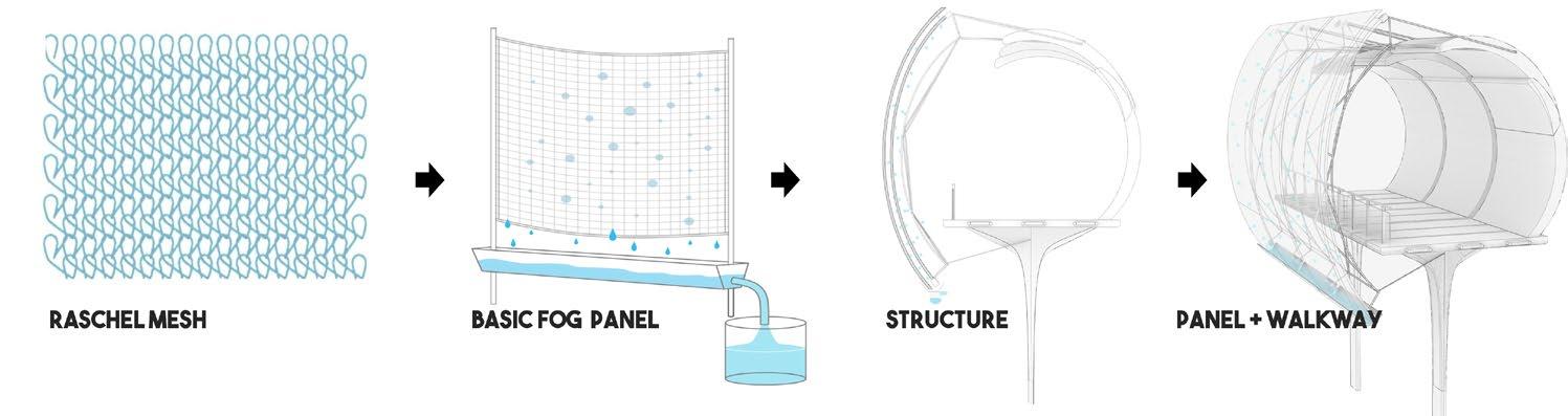 Using raschel mesh and implementing on existing fog harvester design, I transformed the mesh panel into a elevated walkway that based on my research uses 2 stacked mesh panels stretched over a light frame structure in order to support mesh through strong wind currents, while also making it easy to replace damage mesh.