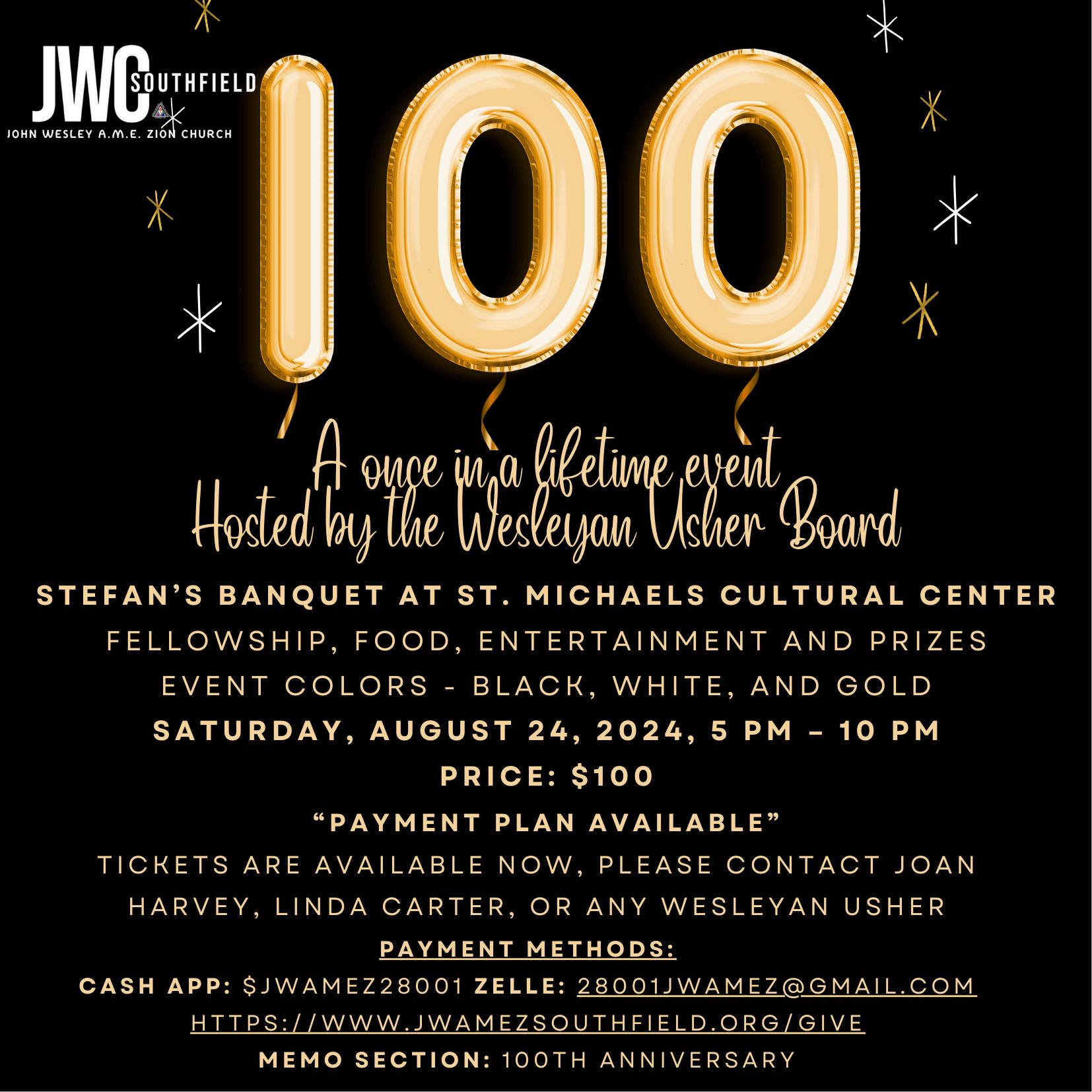 August 24th: 100th Church Anniversary Banquet @5:00pm