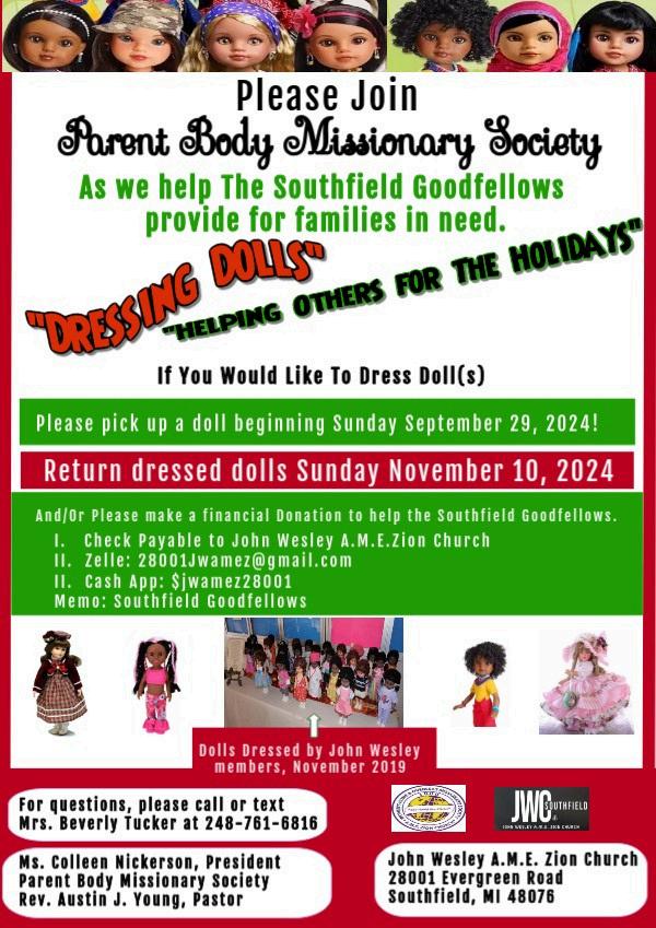 REV. POLLY TALISON, MINISTER OF DISCIPLESHIP:REVPOLLY@JWAMEZSOUTHFIELD.ORG