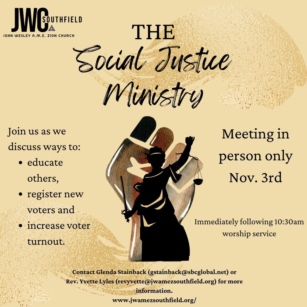 November 3rd: Social Justice Ministry Meeting after 10:30AM Worship