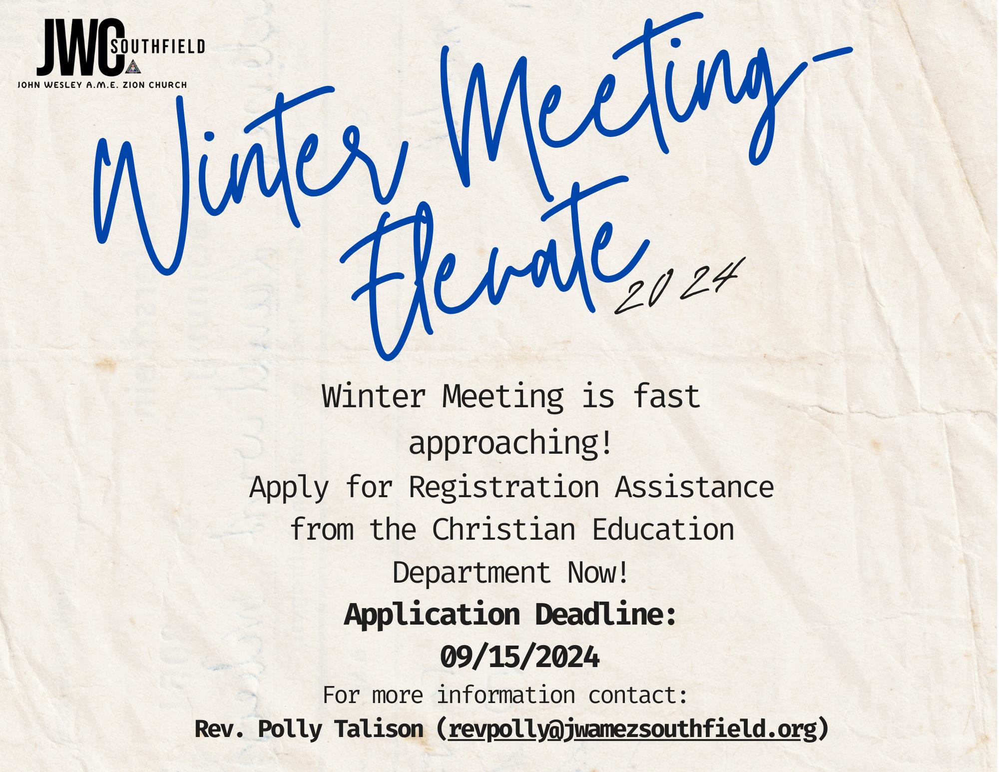 REV. POLLY TALISON, MINISTER OF DISCIPLESHIP:REVPOLLY@JWAMEZSOUTHFIELD.ORG