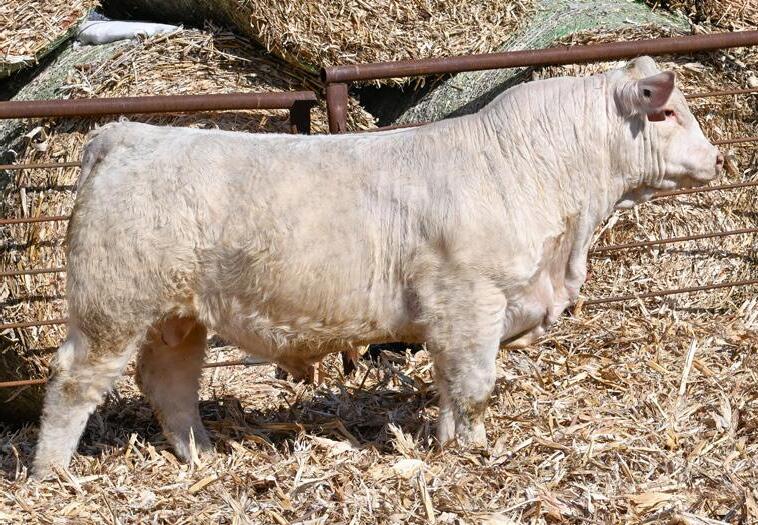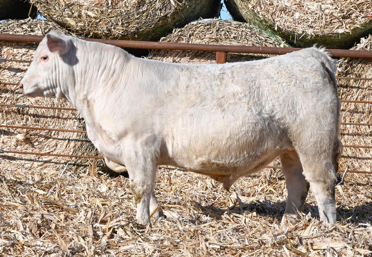 A different pedigree twist with this one, as he is a LT Patriot 4004 son from the M6 New Germaine 608 donor cow at Shepherd Charolais in Stuart, IA. Royally bred, his dam is a full sib to the famous Germaine 484 – most notable as the mother of the hot AI sire Historic and the $47,000 2/3 interest Valhalla, 3007 is a big bodied, easy fleshing type of bull. Add pounds and easy doing ability with this sire prospect. Top 25% YW, CW, top 30% MARB, top 35% WW, MTL, SC, TSI.