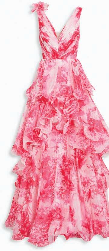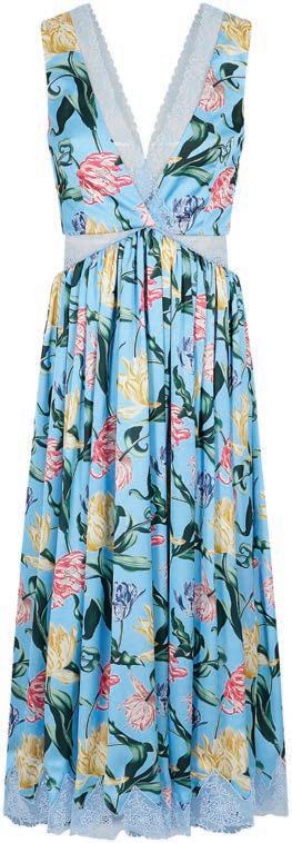 1 Aquazzura, Sundance 140 raffia platform sandals, 2 Spinelli Kilcollin, Tigris MX gris diamond & sterling-silver ring, matchesfashion.com.us 3 Mateo, 14-karat gold lapis lazuli necklace, neta-porter.com 4 Victoria Beckham, crochet knit top, modaoperandi.com 5 Victoria Beckham, fringed crochet knit mini skirt, modaoperandi.com 6 Victoria Beckham, printed plisse lace intarsi maxi dress, modaoperandi.com 7 Paco Rabanne, lace-trimmed floral midi dress in blue, modaoperandi.com 8 Paco Rabanne, lace-trimmed satin maxi dress, modaoperandi.com 9 Marchesa Notte, tiered printed chiffon gown, theoutnet.com 10 Brunello Cucinelli, bead-embellished striped duchesse satin top, net-a-porter.com 11 LOEWE, high-rise pegged-leather trousers, matchesfashion.com.us 12 FARM Rio, pleated lace-trimmed printed satin blouse, net-a-porter.com