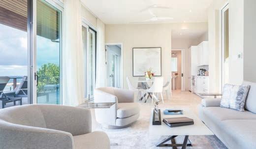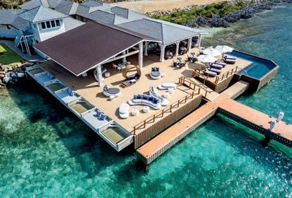 pools, world-class dining options like the Nova overwater restaurant and bar, a wellness center with gym, pickleball and tennis courts, two helipads, Deep Bay Watersports Center, a 93-slip marina, and the Nut House Kids Club. All these amenities are easily accessible by electric golf cart on this car-less island; just take care not to be distracted by the sight of whales breaching on the horizon.