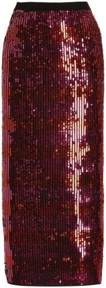 HIGH SHINE: All forms of sequin are a top evening trend for this holiday season. Wes Gordon for Carolina Herrera’s turtle and matching skirt shimmer with a subtle stripe effect while balancing drama with comfort. The perfect celebratory look.