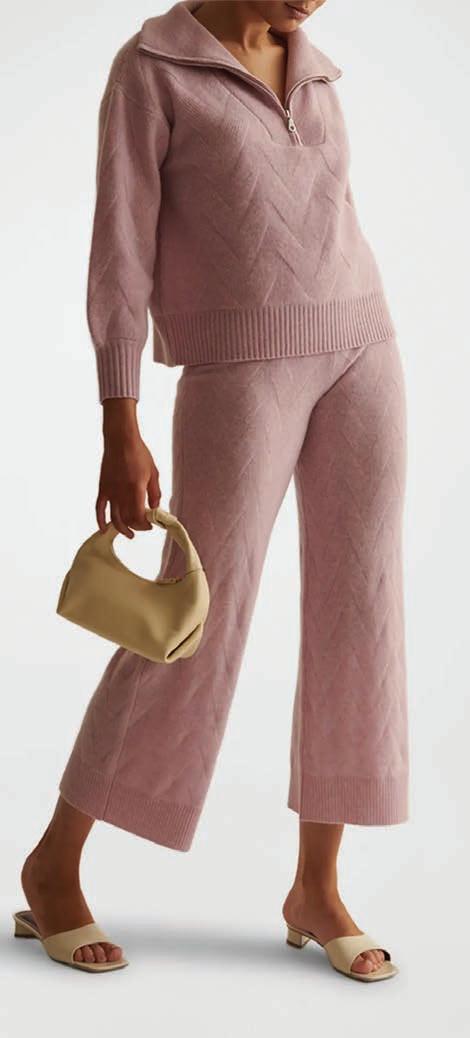 Kelly Rizzo lounges in cashmere sweater and tulle skirt, both by Brunello Cuchinelli, available at Neiman Marcus