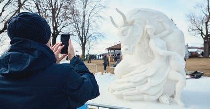 ICE, ICE BABY Mark your calendars for Lake Geneva’s beloved Winterfest, this year celebrating its 30th anniversary from January 28 to February 1. Watch master sculptors transform eight-foot snow blocks into frozen masterpieces during America’s Snow Sculpting Invitational at Riviera Plaza and Flat Iron Park, then stroll the Ice Sculpture Walk where glittering creations line the streets of downtown Lake Geneva. is free festival also offer bonfires crackling on the beach, live entertainment, and lots of snow-dusted activities for kids. It’s the perfect excuse for a day trip or winter weekend away. Download the Visit Lake Geneva app for real-time sculpture updates and the best photo ops. visitlakegeneva.com/winterfest