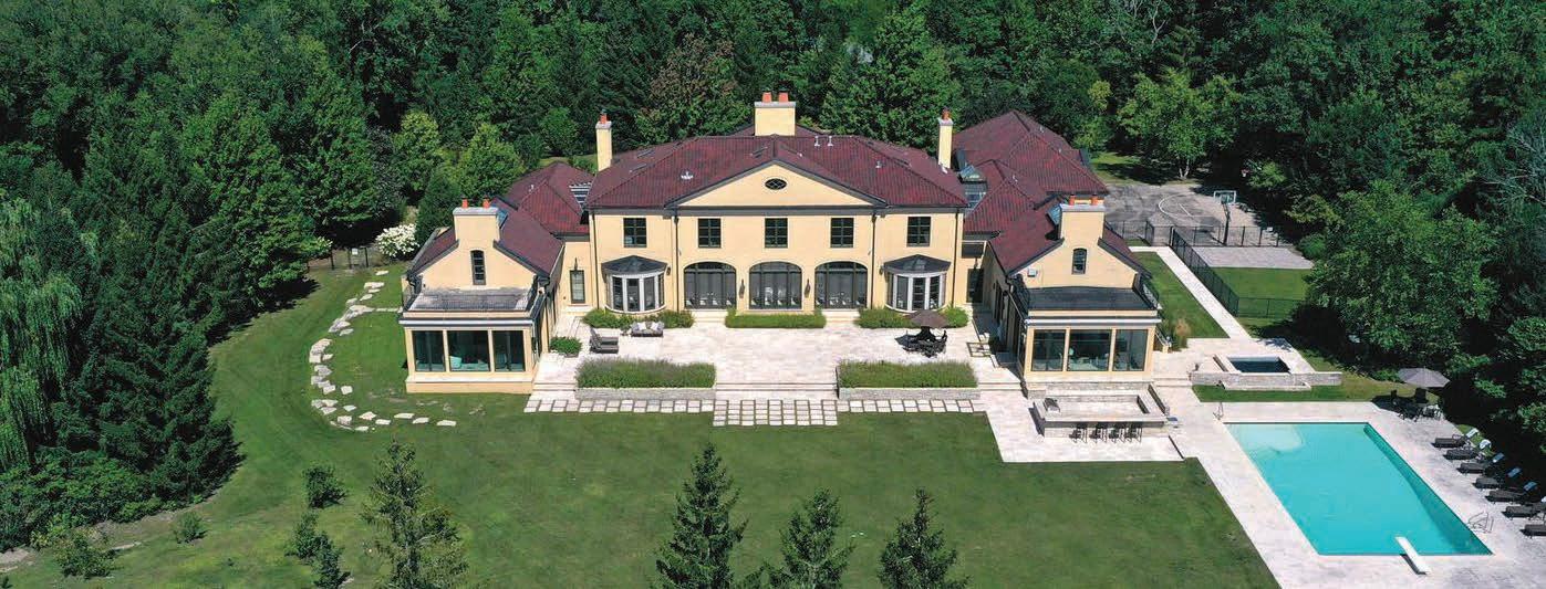 The brick residence o ers 10’+ ceilings, hardwood floors, and a de Giulio kitchen designed for both beauty and function. Two primary suites with morning kitchens provide comfort and flexibility, while additional features include a finished lower level, screened porch, slate roof, and 4-car garage. A timeless blend of craftsmanship and livability, this home o ers both elegance and everyday ease. Its private setting and thoughtful design make it ideal for both grand entertaining and quiet retreat.