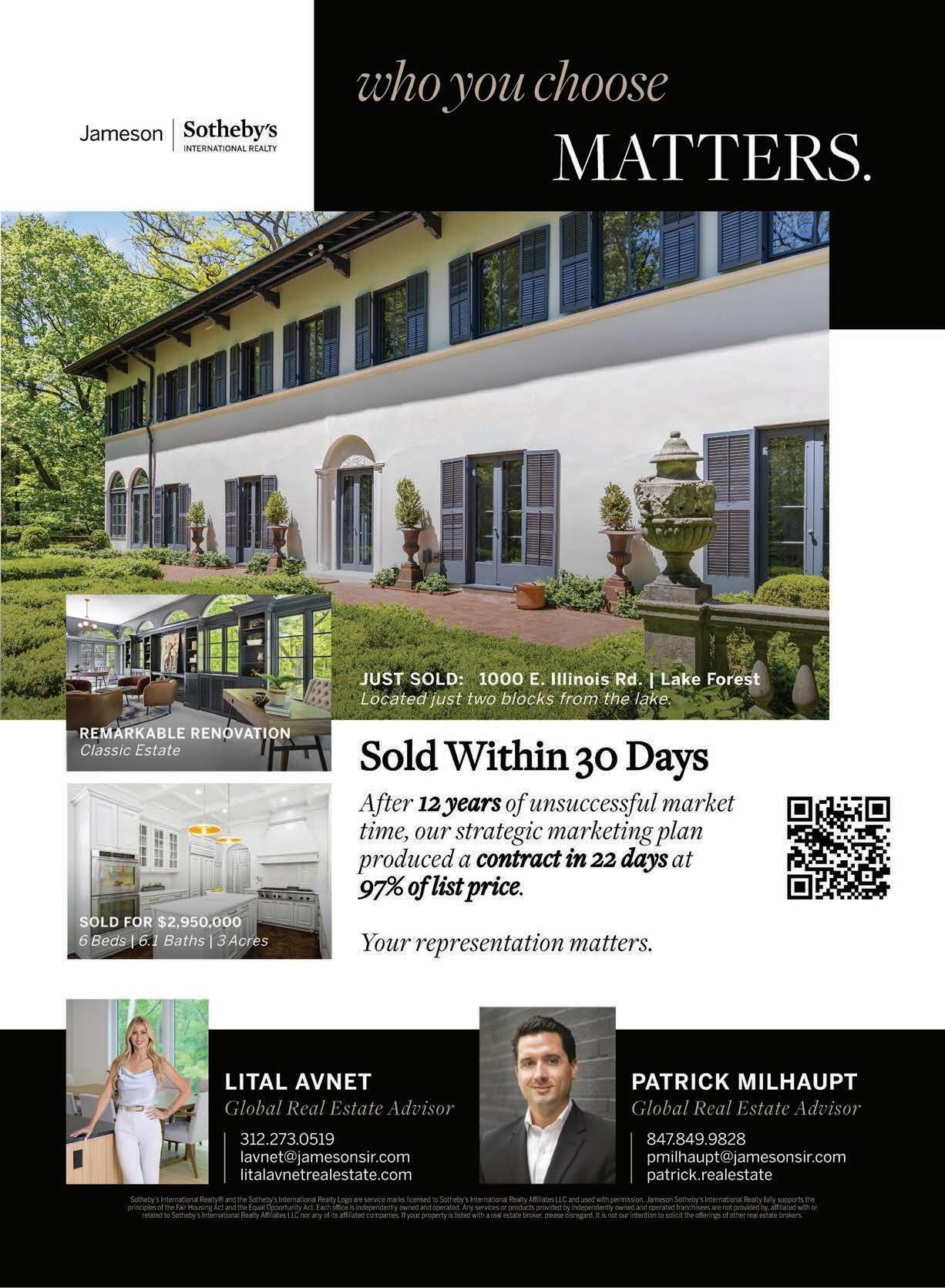 778 N. WESTERN AVE | LAKE FOREST KoenigRubloff.com 778 N. WESTERN AVE | LAKE FOREST BHHSChicago.com © BHH Affiliates, LLC. MAUREE O GRAD TUOH 847.845.6444 mogrady@BHHSChicago.com EAMU TUOH 847.293.7792 stuohy@BHHSChicago.com Whether you’re buying, selling, or looking for an investment property... Now’s the time to make a move 561 Crooked Stick Ct Vernon Hills SOLD 30 Marion Avenue Lake Forest 216 Green Bay Road Lake Forest 1090 Waveland Road* Lake Forest 29029 N Spoon Court* Ivanhoe SOLD 1565 Oak Knoll Drive Lake Forest 980 Mellody Road Lake Forest 1130 N Green Bay Rd Lake Forest SOLD 35090 N Shoreline Dr* Ingleside SOLD 175 Wildwood Road Lake Forest SOLD 150 Heathrow Court Lake Bluff SOLD 1060 Shermer Rd #46 Northbrook SOLD 1256 Edgewood Rd Lake Forest SOLD 715 Woodlawn Avenue Lake Forest SOLD 1012 N Western Ave Lake Forest SOLD 162 Roger Williams Ave* Highland Park SOLD And we can sell your home too * Represented the Buyer Contact us for a complimentary evaluation of your home. 1850 Clark St #1907 Chicago 1 Bed | 1 Bath | $274,900 854 Everett Road Lake Forest 4+1 Beds | 7.1 Baths | $1,889,000 NEW CONSTRUCTION FABULOUS VIEWS