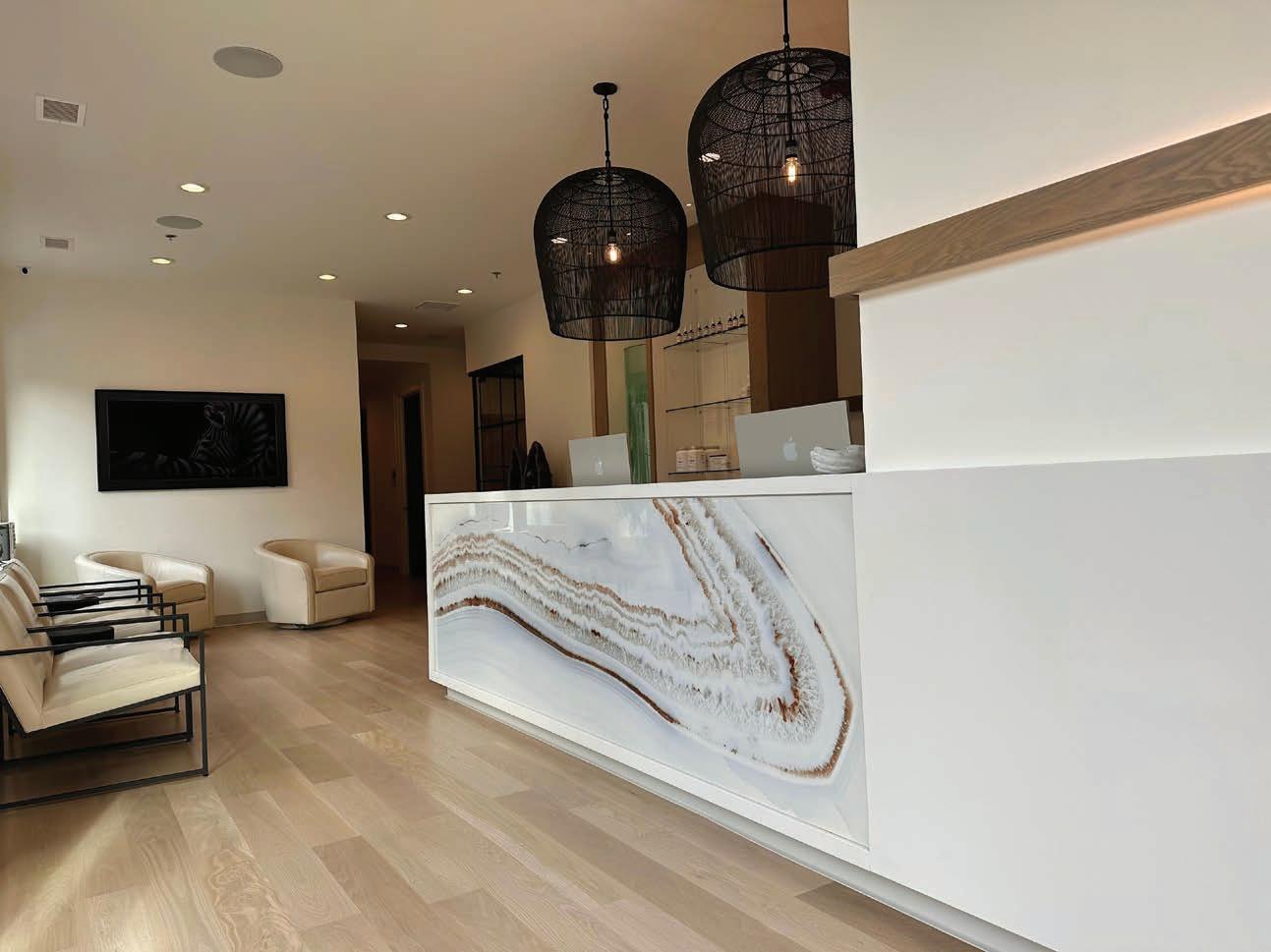 “During COVID I noticed that a lot of my clients started breaking out from the mask, and I initially went to school because I studied the skin, so I said I wanted to have skin care as well,” Farsalas says. “I linked up with someone that worked in pharmaceuticals, and she suggested I create my own brand of medicalgrade skincare products. I now have medical grade skincare line, the at-home tanning products and then the full-service, in-person salon.”