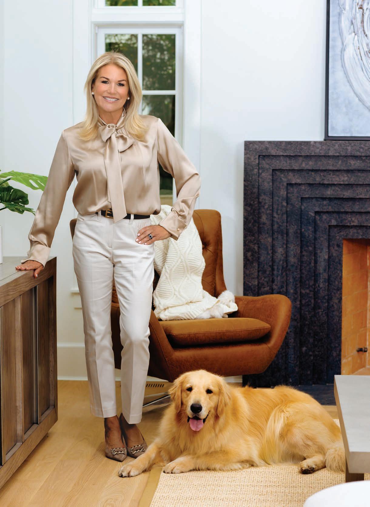 Amy Molfese photographed in her Hinsdale home for Country Vs Town, wearing a top and skirt by Alice & Olivia from Neiman Marcus Oakbrook Center.