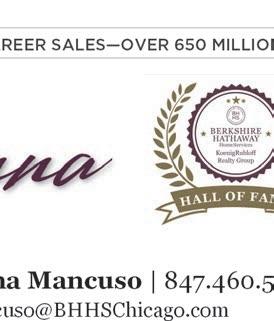 778 N. WESTERN AVE | LAKE FOREST KoenigRubloff.com 778 N. WESTERN AVE | LAKE FOREST BHHSChicago.com *Source Broker Metrics MRED: Volume closed, area 45, 1.1.2018—12.31.2019 Residen�al (Detached, A�ached, -4 units, mobile homes), Lots & Land (Vacant land, deeded parking). CAREER SALES—OVER 650 MILLION! Local Knowledge. World Class Service. Jean Anderson JAnderson@BHHSChicago.com | 847.460.5413 DMancuso@BHHSChicago.com & ANDERSON MANCUSO AndersonMancuso.com Dedicated to your finest real estate experience. More than just a partnership...We’re Family #1 Agents in the #1 Office in Lake Forest for 2018 & 2019! © BHH Affiliates, LLC.