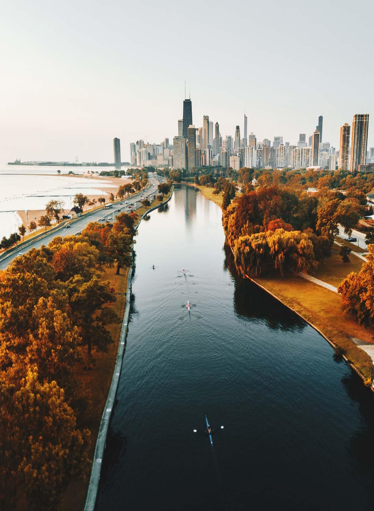 Indoor basketball court! This one-of-akind Lincoln Park home offers 9,500 sf of incredible living space on a 37.5’ wide lot. Beautiful walnut floors and large windows flow throughout the main living spaces. 12’ ceilings, gracious room sizes and a stateof-the-art kitchen make for a great space to entertain. A great room opens directly onto a limestone patio with a fireplace and rooftop deck access. The second floor features four bedrooms, including the primary suite with a spa-quality bath. A large recreation room, two more bedrooms and bath can be found on the penthouse level. This home is truly not to be missed, offering the ultimate in sophisticated living in an unbeatable location.