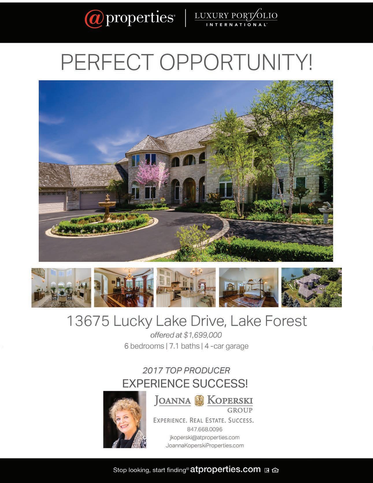 e auction, “ e Genius of Gianni Versace: A Collection of His Iconic 90s Designs,” will be conducted on September 21. For more information, visit lesliehindman.com. For more information on 275 Sussex Lane in Lake Forest, contact Ivan Petrov, 773-934-8253, or Harold Blum, 312-498-2015, a liated with Berkshire Hathaway Home Services/KoenigRublo Realty Group, or visit 275sussex.com.