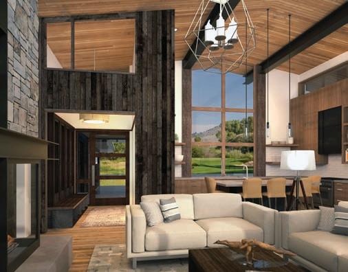 The clubhouse foyer soars into an atrium and a wide staircase climbs to a second floor that houses the gym and ladies’ changing rooms. Western chic furnishings encircle a massive fireplace with colorful contemporary art lining the walls. Off the reception area are two restaurants—the formal River Room restaurant and the more casual Canyon Bar. Both incorporate local ingredients, boast outstanding wine lists, and offer astounding views. The chef works with local farms, dairies, and ranches to create simple yet sophisticated farm-to-table cuisine. Not only an expert at pairings, the chef is also a master of presentation.