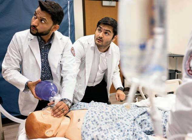 A key component of their education is real-world training through RFU’s Department of Healthcare Simulation, which provides safe spaces for students to practice their clinical skills in simulated emergency situations. Students participate in a simulation exercise with intranasal naloxone (also known as Narcan®), a quick-acting opioid-reversal agent that can save lives if given in a timely manner.