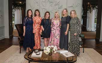 LEFT: Showhouse co-chairs Shannon Shader, Jennifer Durburg, Susan Rolander, Dawn Talma, Barrett Erker, and Cathy Crowley. MIDDLE: Executive Committee of the Lake Forest Chapter of Infant Welfare Society Shannon Shader, Wendy Franzen, Annie Liddle Back: Chrissy Davis, Jenny Mulliken, Eva Rice, Katie Donovan, Kate Holland, and Kate Rother. RIGHT: William Franzen, Wendy Franzen, Kathy Fletcher, and Hannah Franzen in the Garden Room. PHOTOGRAPHY BY WIDIA VITI