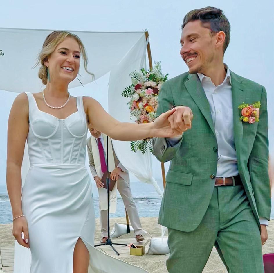 Robin Raphael and Jack Simke of Burlingame, and Julie and John DeRubes of San Diego, are very pleased to announce the marriage of their children, ARIELLA SIMKE and BRIAN DERUBES, at Monastery Beach in Carmel on Oct. 27, 2024, with Brian’s father, John, o iciating. Ariella is a senior editor at Scuba Diving magazine, and Brian owns Monterey Expeditions, a local adventure and guide company. Brian will be known as Brian John-DeRubes Simke. The couple will continue to reside in Monterey with their two cats.