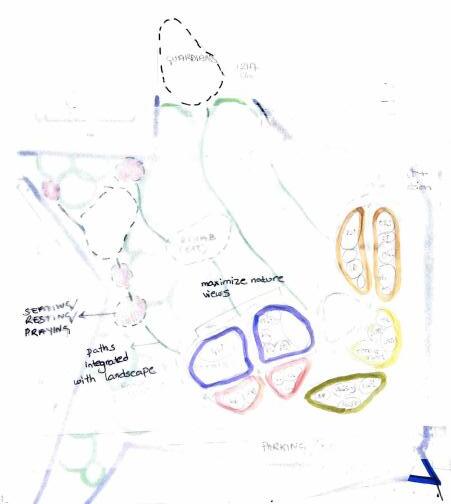 Central to the design thesis is the integration of nature, emphasizing greenery, and capitalizing on natural elements such as light and ventilation. Thin building forms are strategically employed to facilitate an immersive experience where the boundaries between interior and exterior spaces blur, and both bleed into each other. As my design attempts to work with nature, I allowed site conditions, the placement of existing trees, and user experience within the landscape to inform the form and placement of spaces.