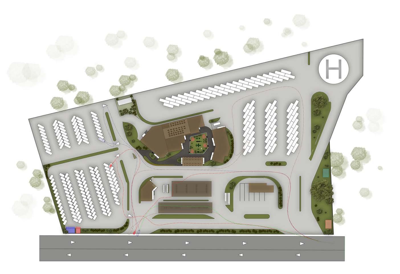 Design Problem : To design a center which helps to improve long distance travelling experience for commuters. To create employment oppurtunities for local youth. A platform for farmers to sell their produce. To encourage frequent breaks during the journey. To reduce driver fatigue related accidents. Helipad to expedite evacuation during medical emergencies and providing disaster relief. Highway village is a mega-project which is proposed to be constructed across 183 sites in the country by the government. It will be developed through the Public-Private Partnership (PPP) model.