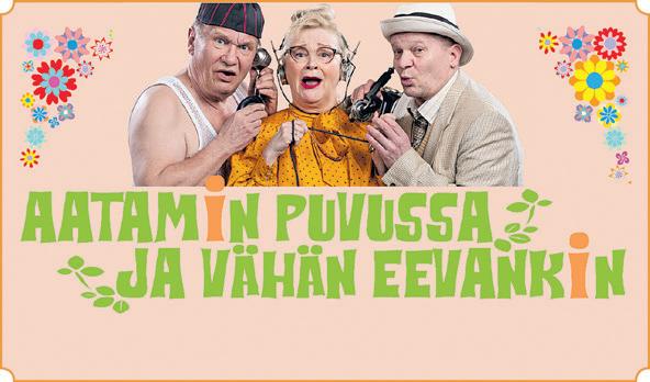 Tupacircus: Toivon kipinöitä KE 5.7. & TO 6.7. KLO 18 KULTTUURITALO VILLA RANA, PAULAHARJUN SALI La Kala: Piika emäntänä TO 6.7. KLO 18 LA 8.7. & SU 9.7. KLO 19.30 KONGINKANKAAN KYLÄTALO VANHA PAPPILA Koulun tila – osa 1 PE 7.7. KLO 18 & 20 HUONETEATTERI Haukanmaan kesäteatterin taideristeily: Kato tarkemmin LA 8.7. KLO 10 MÄMMINIEMI / JYVÄSKYLÄN SATAMA 17 Kasvu ja kukoistus LA 8.7. KLO 16 KULTTUURITALO VILLA RANA, BLOMSTEDTIN SALI Kymmenen kohtausta kirkossa MA 10.7. KLO 18 KULTTUURITALO VILLA RANA, BLOMSTEDTIN SALI Teatteri Aurore B: Everstinna TI 11.7. KLO 16 KULTTUURITALO VILLA RANA, BLOMSTEDTIN SALI 12 Antti Autio TO 6.7. KLO 18 LOUNAISPUISTO Ursus Factory TO 6.7. KLO 19.30 LOUNAISPUISTO Arppa TO 6.7. KLO 21 LOUNAISPUISTO Pehmoaino TO 6.7. KLO 22.30 LOUNAISPUISTO 13 Ege Zulu PE 7.7. KLO 17.15 LOUNAISPUISTO Sofa PE 7.7. KLO 18.45 LOUNAISPUISTO Sexmane PE 7.7. KLO 20.15 LOUNAISPUISTO Paperi T PE 7.7. KLO 22 LOUNAISPUISTO Ruusut PE 7.7. KLO 23.30 LOUNAISPUISTO