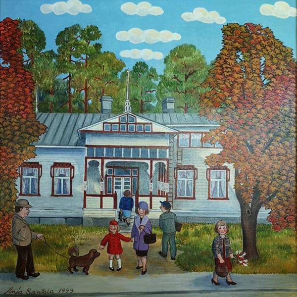 I’ve always thought of the landscape as resembling a small town in Tuscany or France. Recently, I discovered that the painter is from Jyväskylä, and now living here myself, I’ve started to see it as the view from Taulumäki to the city center. My father attended middle school in Jyväskylä during the war years and enjoyed ski jumping at Taulumäki.