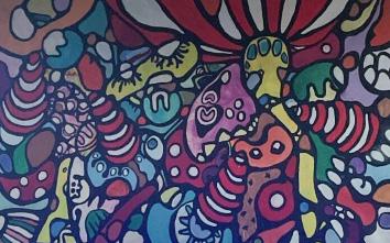 Kesällä 2015 olimme Tampereella lomalla ja virastotalon ikkunassa näimme vastaavia upeita teoksia. Selvittelimme loman jälkeen, voisimmeko ostaa teoksen, joka puhutteli meitä heti. Teokset oli tehty nuorten työpajassa ja eivät olleet myynnissä. Työpajan vetäjä Tarmo Kaikkonen lupasi kysyä eniten viehättäneen teoksen tekijältä, tekisikö hän meille oman maalauksen. Aarni oli silloin 17-vuotias ja hän suostui tekemään meille teoksen. Se on siitä lähtien ollut meidän olohuoneen seinällä. Teos on meille erittäin tärkeä.
