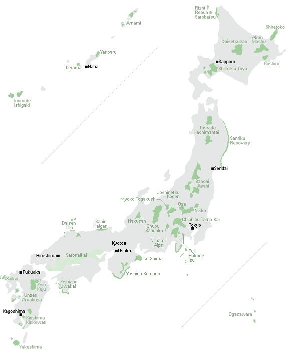 Japan is a very unique set of 4 islands built up by volcanoes and tectonic movement. The island is located between the Paci c plate and Eurasian plate,(diagram shown at the bottom of the page ) and is apart of the ring of re. To add to its unique environment its covered in sacred mountains ,one of the features that makes Japan so famous .as you can see on this diagram here-->.Most cities and population being on the coastline of Japan opposite of the great mountains. Japan is very unique as such with its wildlife and national parks. Located all over the islands Japan has 34 parks ,that holds its unique wildlife like: the snow monkeys, giant salamanders,giant spider crabs, stellers sea eagles,red crow cranes ,bears, Blakistonâs sh Owl, and many more. Including its massive sea life and coral reefs. Some places being very unique and only having speci c animals on it like ,rabbit island or fox island. All green locations hear show the parks->.