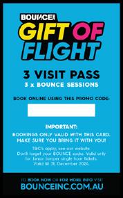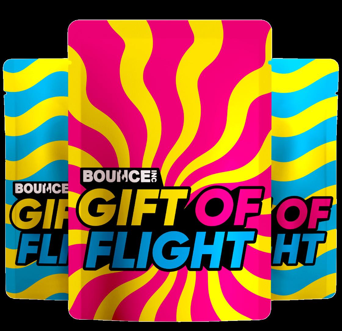 2022 | Issue 6 9 ESTATE NEWS GIVE THE THESE HOLIDAYS The 100% awesome, BOUNCE Gift of Flight is back these holidays! MEGA MANIA 2 HOUR PASS LIMITED EDITION STICKER SHEET LIMITED EDITION SOCKS