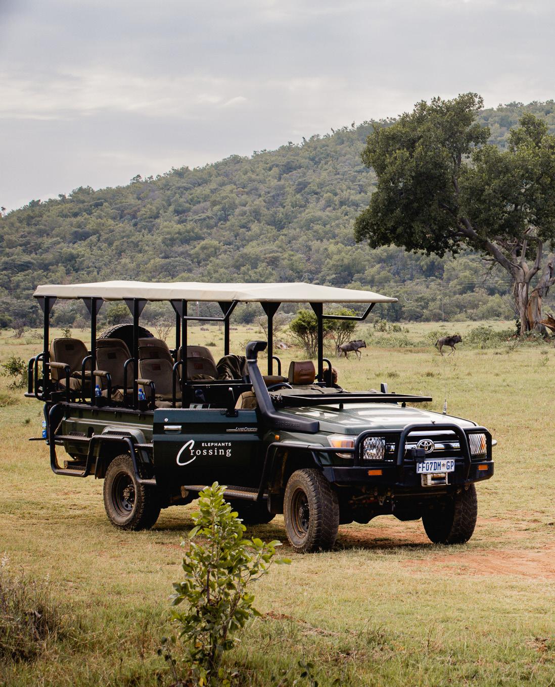 the lodge. Guests can tour the farm, pick fresh ingredients, and see the chefs at work before they are transported through the reserve in open game viewing vehicles to the lodge.