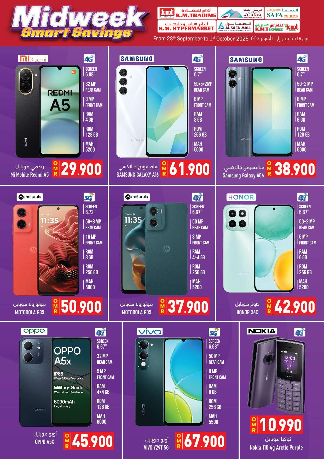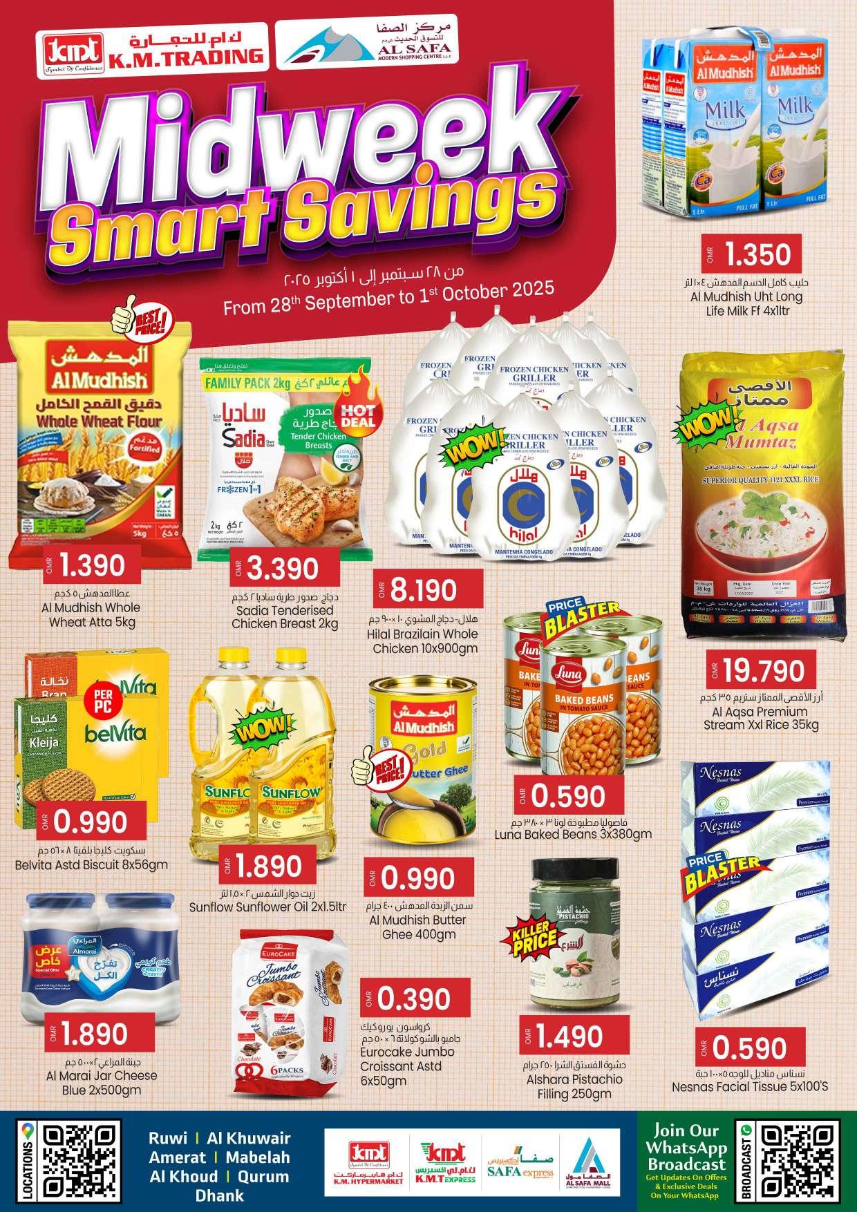 Grab the Mid-Week Smart Savings at K.M. Trading and Al Safa Stores in Oman. Enjoy exclusive discounts across top products. Offer valid till 1st October 2025 at: