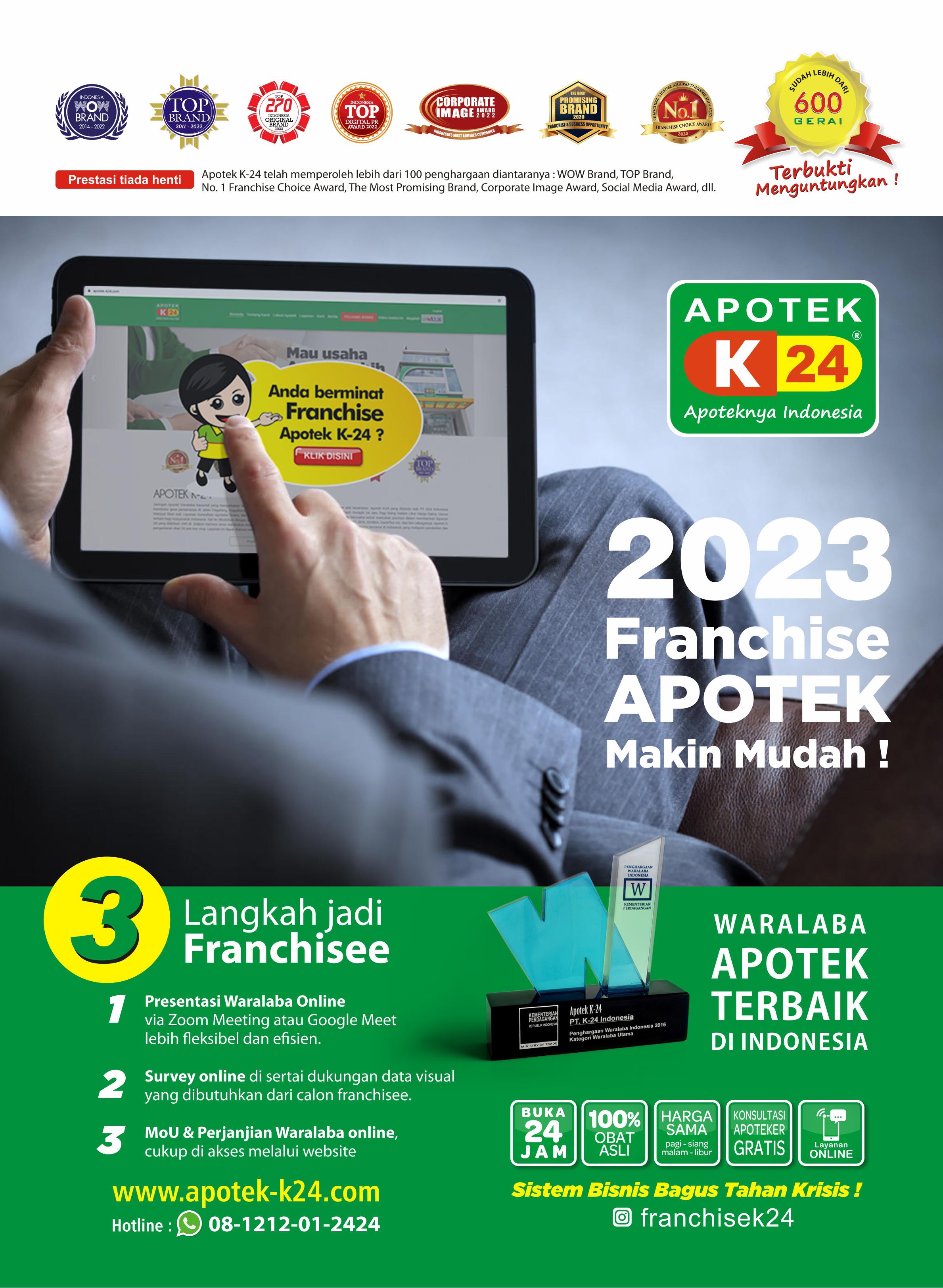 Asli Indonesia yang Pertama dan juga Apotek Waralaba Terbaik di Indonesia. Selain itu, Apotek K-24 juga menjadi Apotek Jaringan Pertama di Indonesia yang buka selama 24 jam.