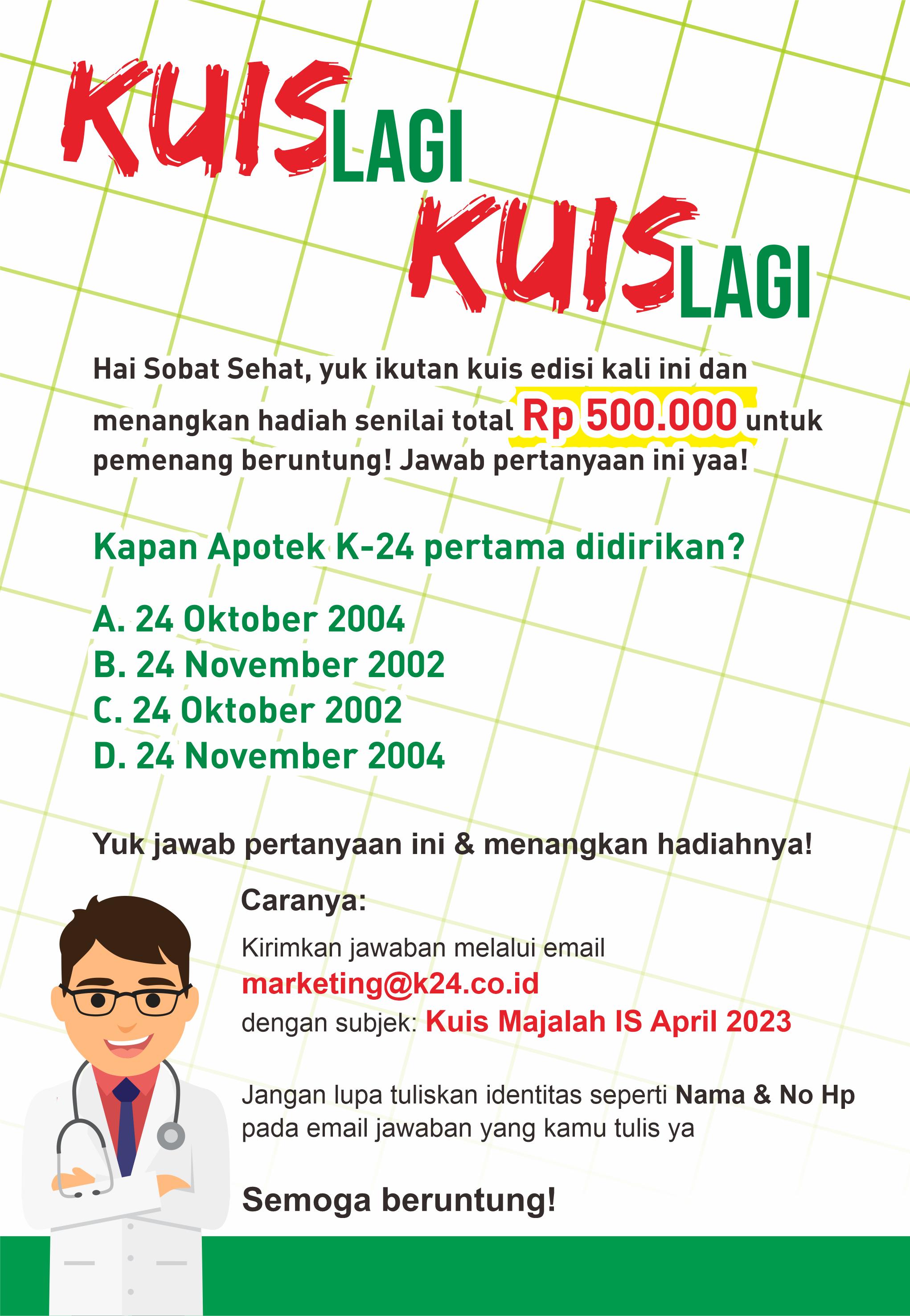 hat Inspi Edisi: April 2023 MAJALAH ONLINE K-24 @franchisek24 k24sobatsehatkitakita sobatsehatkita dokter24 @apotekk24id @apotekk24official Raih Kepuasan Franchisee Tertinggi, Apotek K-24 Sabet Top 20 Franchisee Satisfaction Award 2023 Temukan Kuis Berhadiah Uang Tunai! Hati-hati, Ini Bahaya Bayi Lahir dengan Berat Badan Rendah! Ini Sosok Kartini-nya K-24, Si Perempuan Tangguh yang Pantang Menyerah