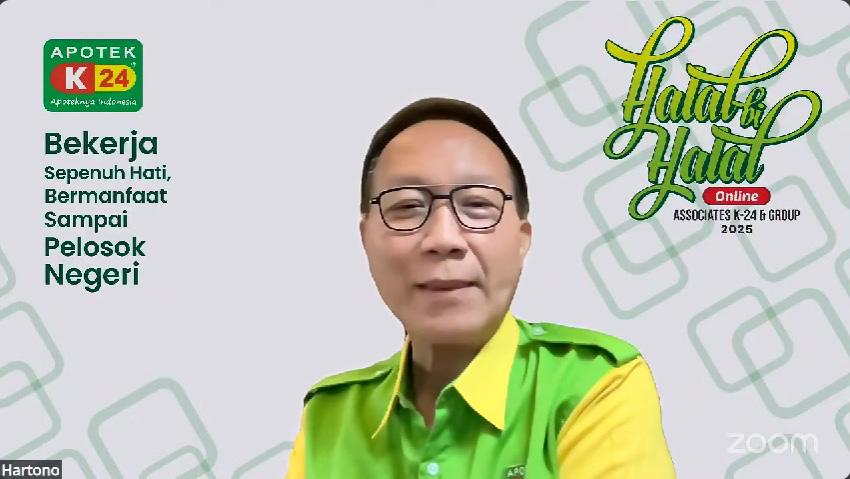 Semangat kekeluargaan dan dedikasi untuk melayani negeri terpancar kuat dalam acara Halal Bihalal virtual yang diselenggarakan oleh Associate K-24 & Group pada Kamis, 17 April 2025. Mengusung tema “Bekerja sepenuh Hati, Bermanfaat Sampai Pelosok Negeri”, acara yang berlangsung secara daring mulai pukul 13.30 hingga 16.00 WIB ini berhasil menghimpun seluruh Associate K-24, baik yang bertugas di kantor pusat maupun di berbagai gerai apotek yang tersebar di seluruh Indonesia.