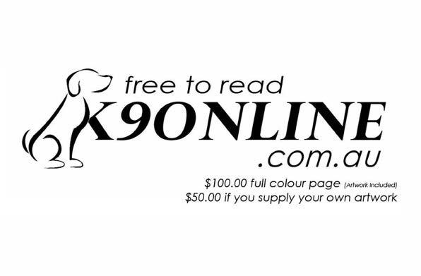 $100 for a full single page advert with artwork supplied $50 if you supply yuour own artwork ready to go (email Ads to info@k9online.com.au)